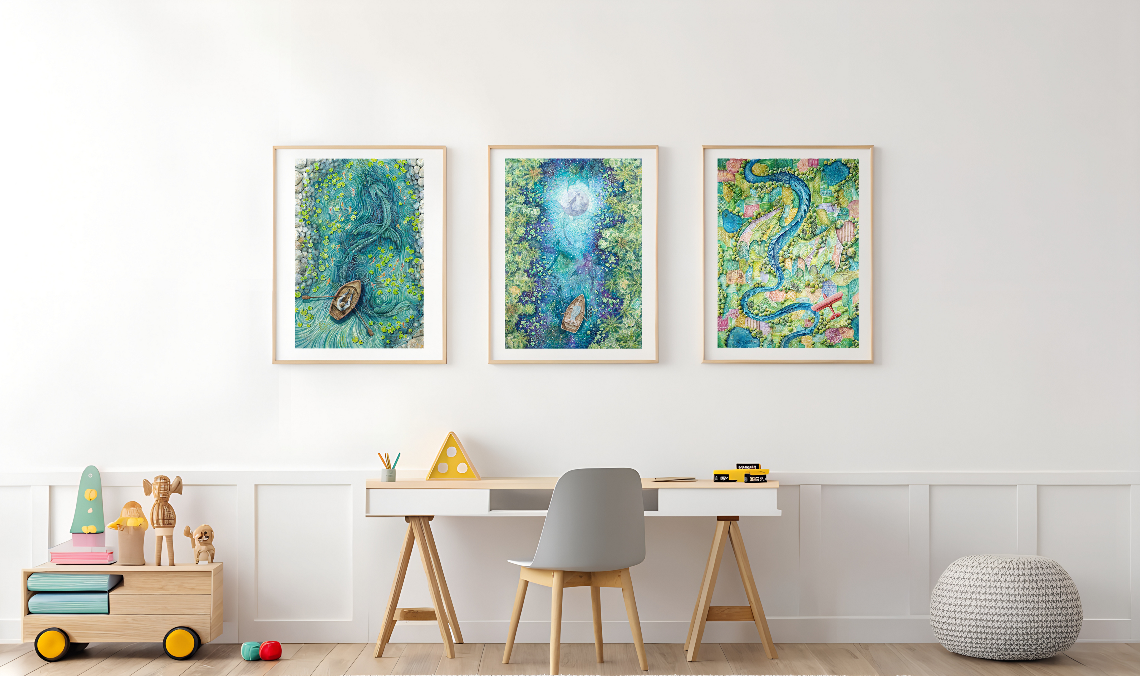 Looking for a stunning work of art to bring your walls to life? These beautiful giclée prints blend vibrant color, intricate detail, and whimsical charm—revealing new little images and surprises each time you look, making them a masterpiece you'll treasure for years.