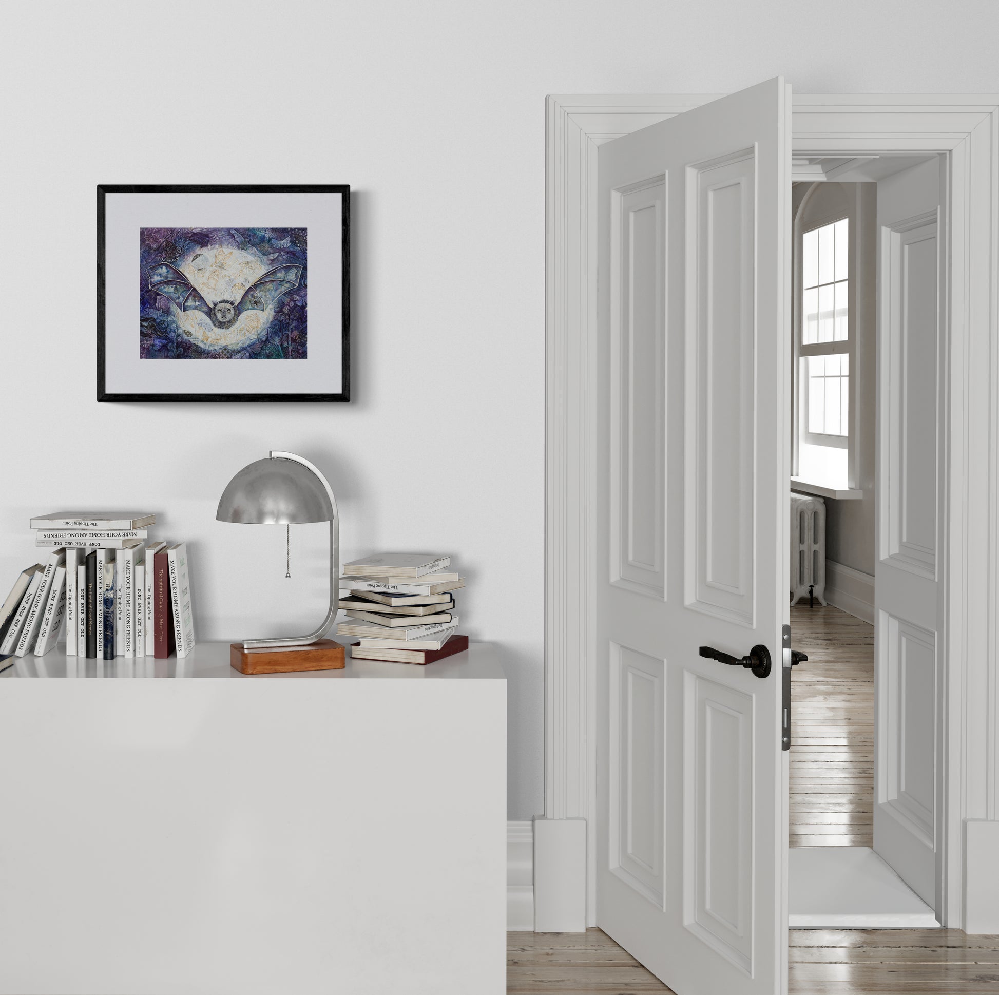 Get ready to reveal some hidden art! Our exclusive watercolor print features a full moon and a mysterious bat, for a one-of-a-kind piece that will add some fun and whimsy to your space. Unlock the secrets of this unique print today!